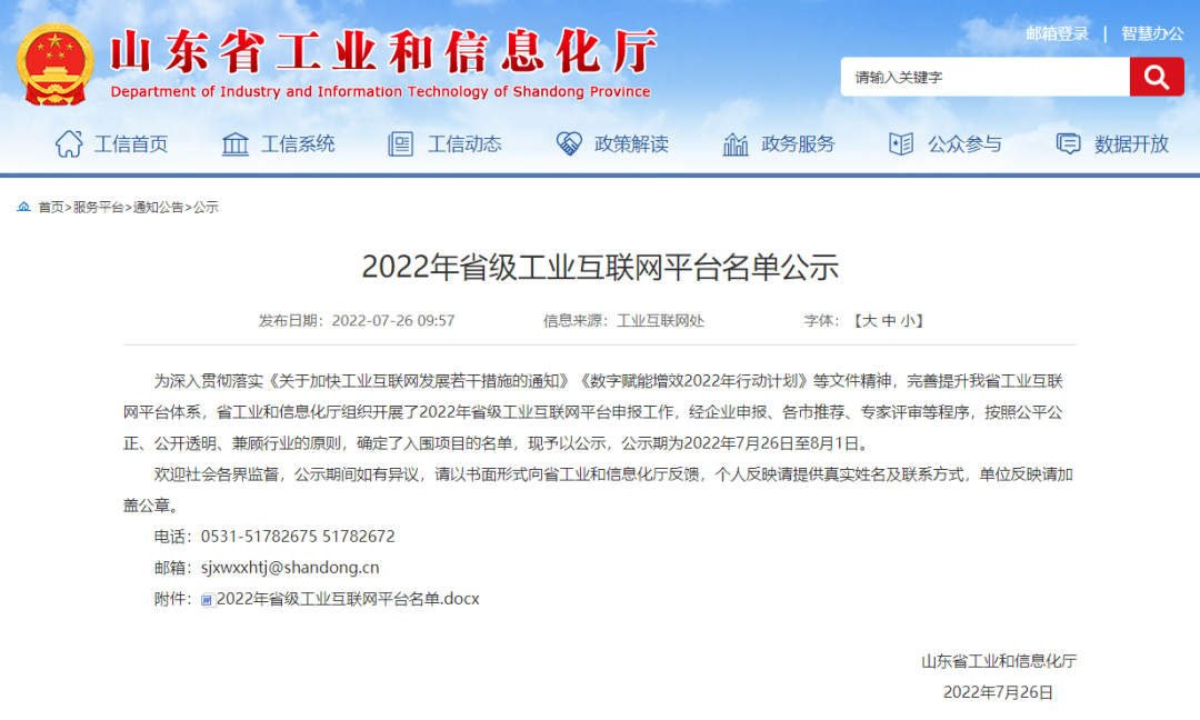 7月26日,山東省工業和信息化廳公布了2022年省級工業互聯網平臺名單,憑借自身在能源雙碳、安全生產工業互聯網雙跨領域的賦能實踐,和遠Hi-IoT云平臺成功入選。
