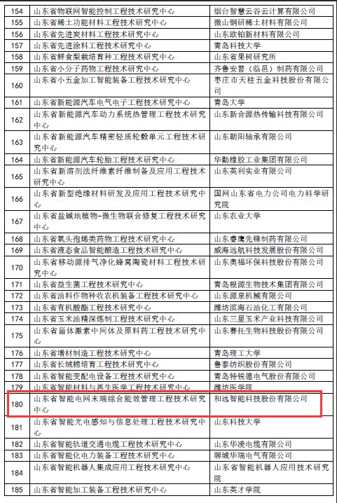 近日,山東省科學技術廳發布2018年度山東省工程技術研究中心名單,公示時間為12月10日至12月14日。和遠智能有幸獲批成為山東省智能電網末端綜合能效管理工程技術研究中心。