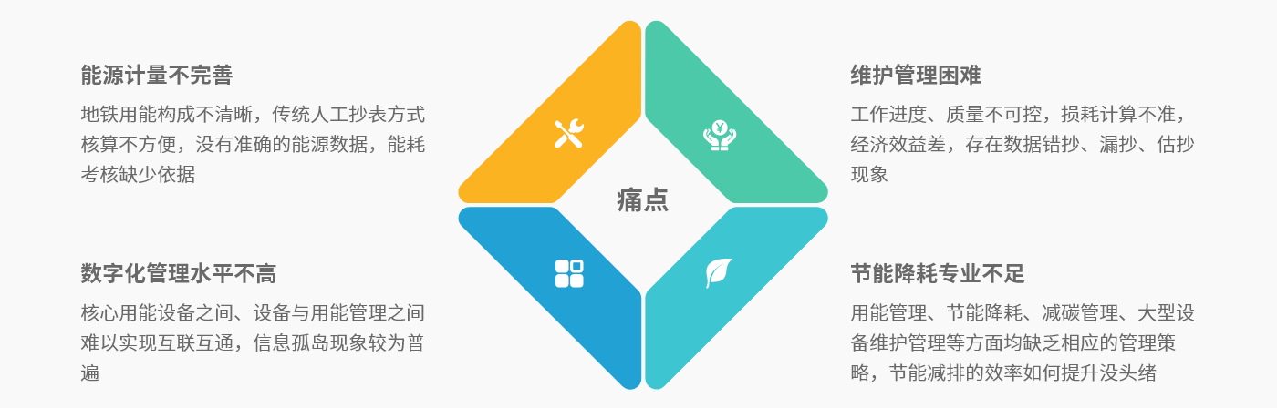 地鐵能源管理系統通過各類采集終端獲取用能數據,實現對鐵路地鐵內電、水等各類能耗計量,完成數據采集與存儲、分類分項分戶分專業數據統計與分析等,做到能源消耗可視化、信息化。系統可幫助鐵路相關管理部門實現能耗預警,節能減排,提高能源利用率,降低用戶成本,提高風險預判能力。結合大數據分析,還可實現資產全鏈條全生命周期的管理,輔助優化用能結構、節能降耗、減少碳排放、降低成本。